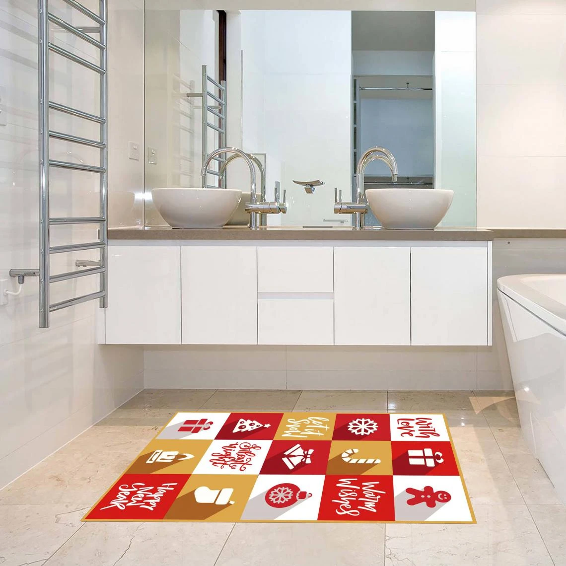 Points forts Alter Tapis de bain, 100% Made in Italy, Tapis antitache avec impression numérique, Tapis antidérapant et lavable, Modèle de Noël – Bornéo, 120×70 cm