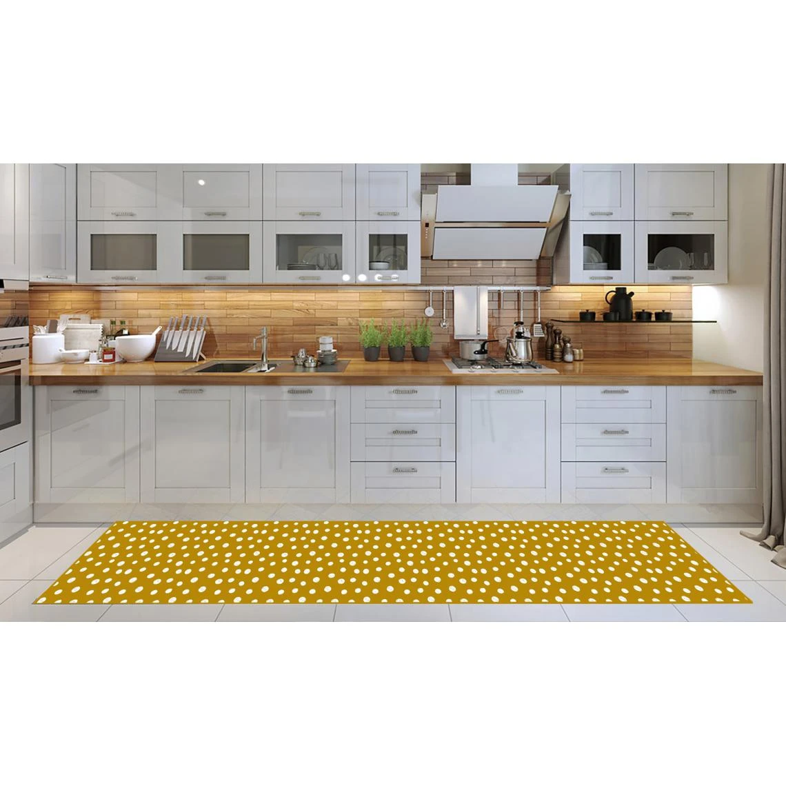 Chemin de cuisine rectangulaire imprimé numériquement avec des encres à base de pigments naturels qui confèrent au produit une solidité des couleurs et une résistance élevées dans le temps. Tapis rectangulaire en 100% polyester imprimé numériquement : au dos ce tapis est équipé d’un caoutchouc antidérapant qui rend le produit sûr grâce à l’adhérence qui se crée avec le sol. Grâce aux mesures, il est parfait pour être placé sous la cuisine, la plaque de cuisson et l’évier : ce coureur est anti-acariens et résistant aux taches, lavable en machine à 30 °, de préférence séparément des autres vêtements grâce à la composition en vinyle. Fabriqué avec des matériaux Made in Italy : la production 100% italienne garantit la fiabilité, la résistance et la durabilité dans le temps, l’attention aux processus de production, le choix de matières premières de qualité et le souci du détail font de ce produit un travail noble. Ce tapis antitache est lavable en machine à 30° : grâce aux matières premières de qualité et à l’impression numérique aux pigments naturels il restera comme neuf même après de nombreux lavages – Possibilité d’impression personnalisée, contactez en privé pour information – Dimensions en cm :