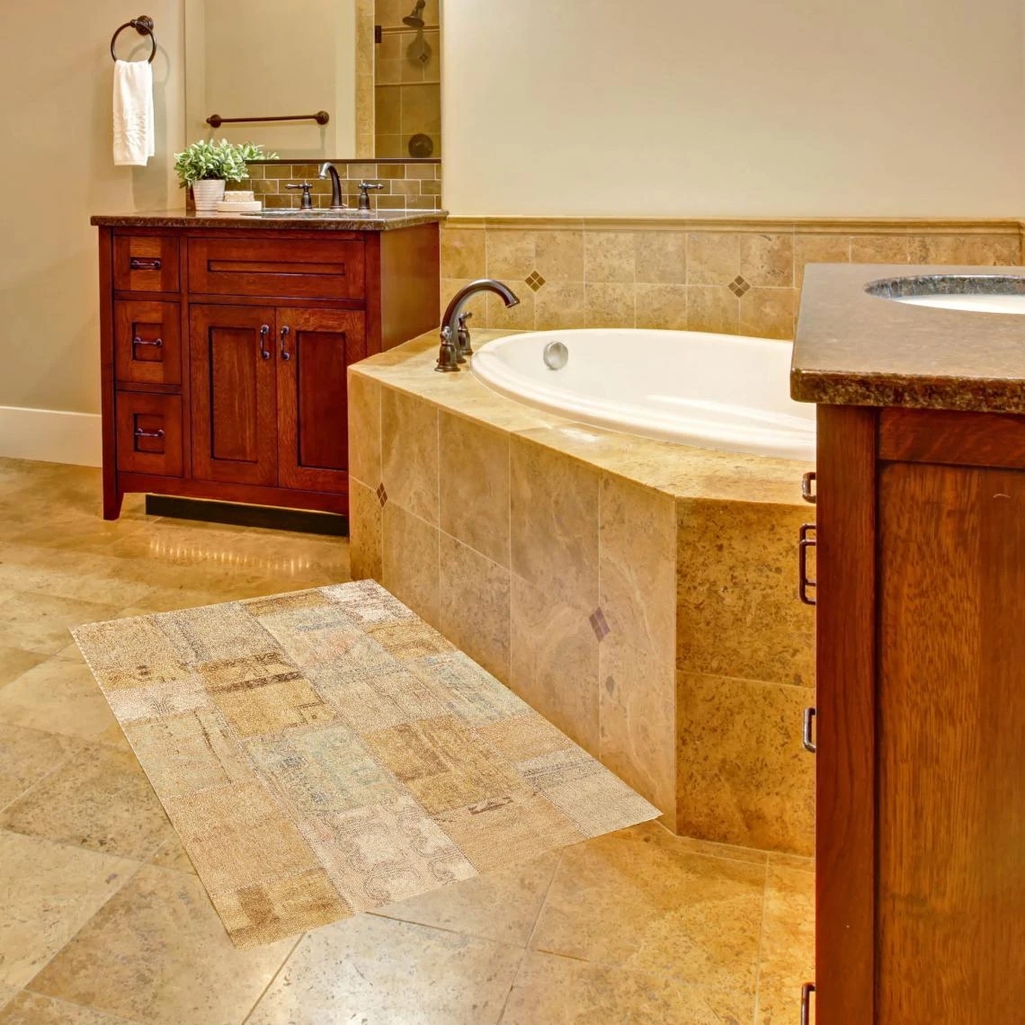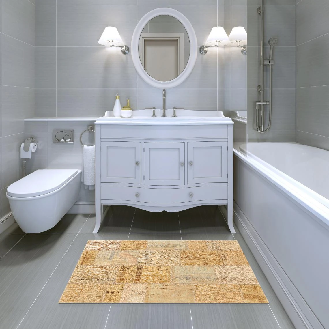 Points forts Alter Tapis de salle de bain, 100% Made in Italy, Tapis antitache avec impression numérique, Tapis antidérapant et lavable, Modèle Alana, 120×70 cm