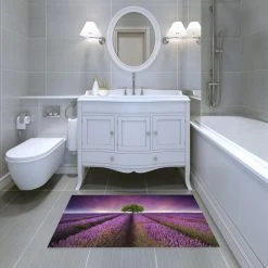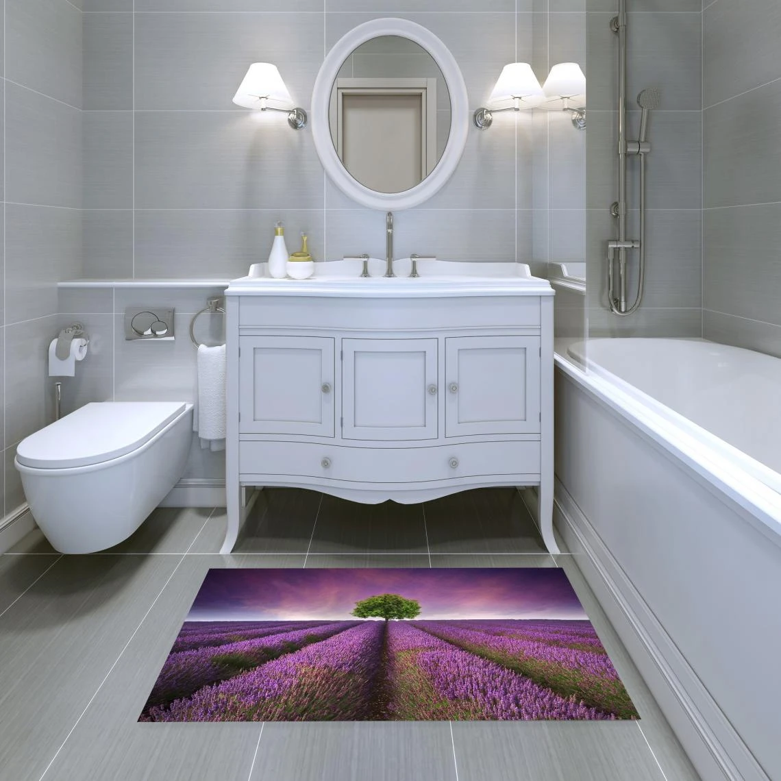 Points forts Alter Tapis de salle de bain, 100% Made in Italy, Tapis antitache avec impression numérique, Tapis antidérapant et lavable, Modèle Alana, 120×70 cm