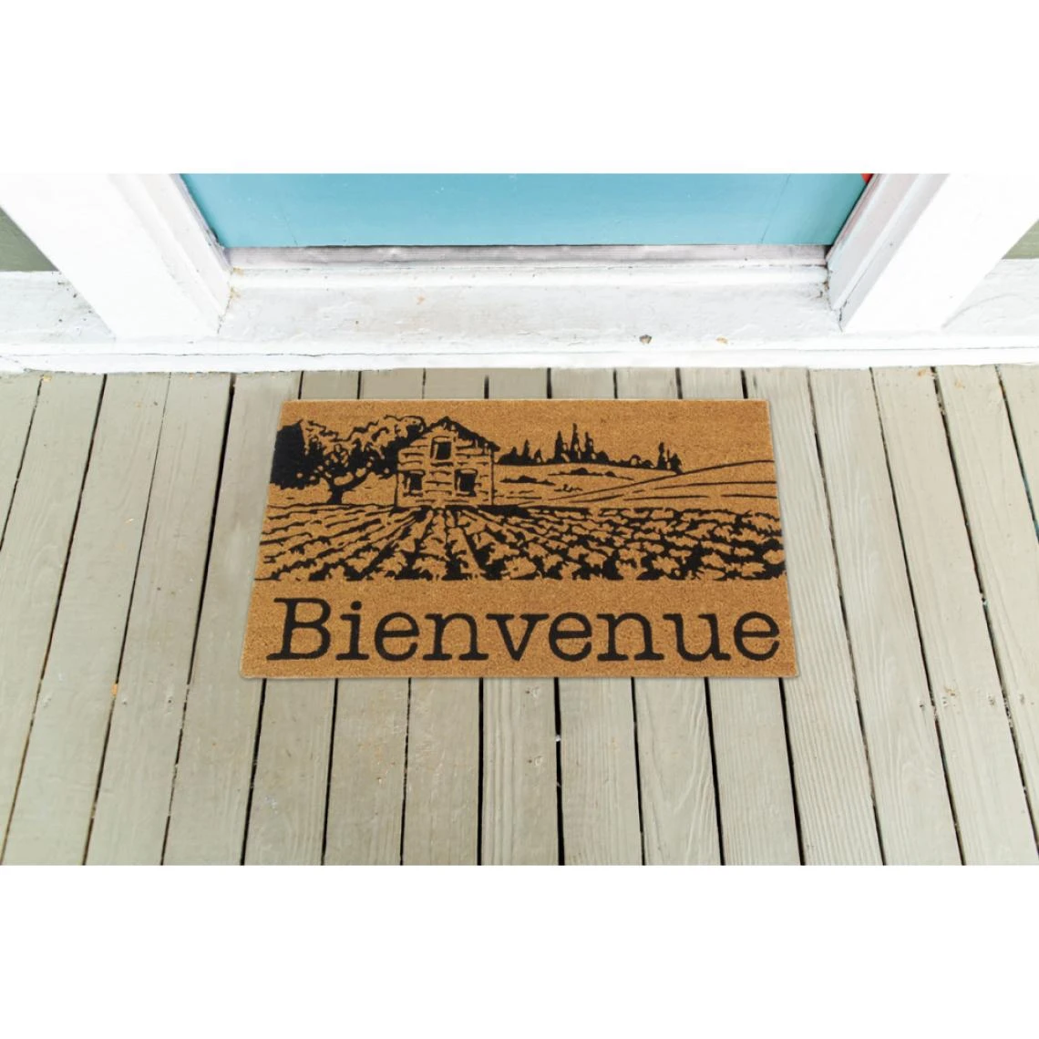 Points forts Aubry Gaspard Paillasson coco intérieur extérieur 75 x 45 cm Village de Provence bienvenue.