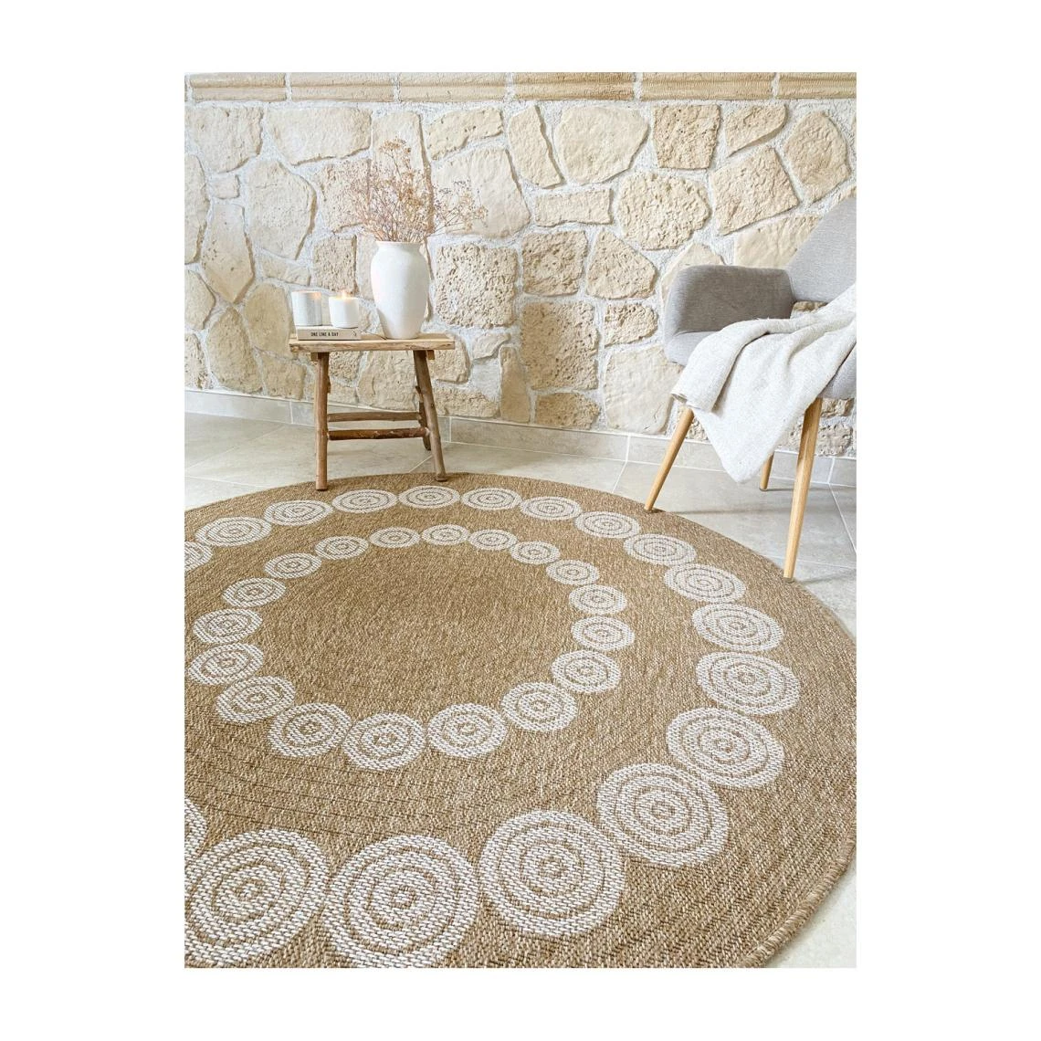 Points forts Avril Paris Tapis extérieur rond – 160cm – naturel – 100% polypropylène résistant aux UV – 1400 gr/m2 – LIAK