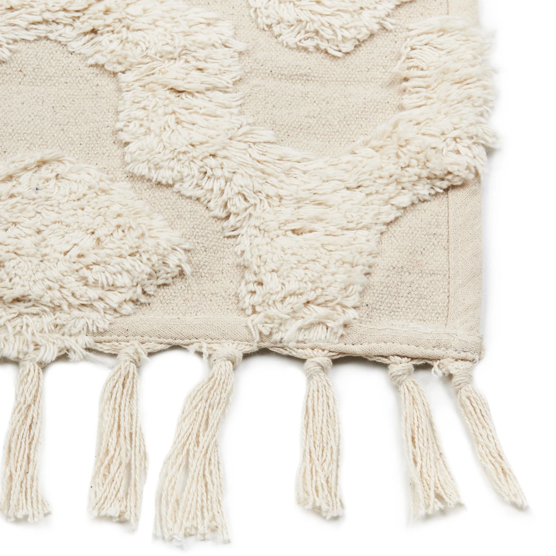 Tapis style boho. Vous rêvez d’une chambre ou d’un salon chaleureux ? Avec ce tapis en coton touffeté et moelleux, votre espace aura un caractère accueillant et une ambiance bohème à la fois. Doté d’un motif géométrique texturé et de franges, il apportera de la convivialité à n’importe quelle pièce. Détails: Type de produit: À poil court Style: Boho Couleur principale: Beige Nuance: Beige clair Type de matière: Tissu Matière principale: Coton Composition de la matière: 100% Coton Forme: Rectangulaire Fond anti-glisse: Non Densité: 1000 Motif: Géométrique Convient avec le chauffage au sol: Oui Tissage: Touffetage à la main Dimensions: Hauteur du tapis: 1.5 cm Largeur: 80 cm Longueur: 150 cm Poids: 1 kg L`offre inclue: 1 x Tapis Caractéristiques clés: Incroyablement doux, Solution parfaite pour la chambre et le salon, Un facteur de confort dans votre intérieur, Un style simple s’adaptant à tout type d’intérieur, Finition précise Informations supplémentaires: Le produit nécessite un certain temps après le déballage pour atteindre sa forme idéale. Nous vous recommandons de le déplier dès que possible, de lui donner jusqu’à 48 heures pour se redresser, ainsi que de mettre un poids lourd sur les extrémités pour un meilleur rendu.