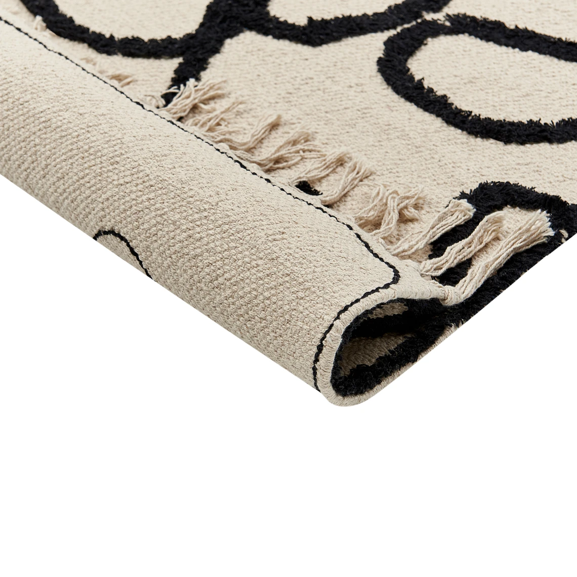 Points forts Beliani Tapis en coton beige et noir 160 x 230 cm KONUR