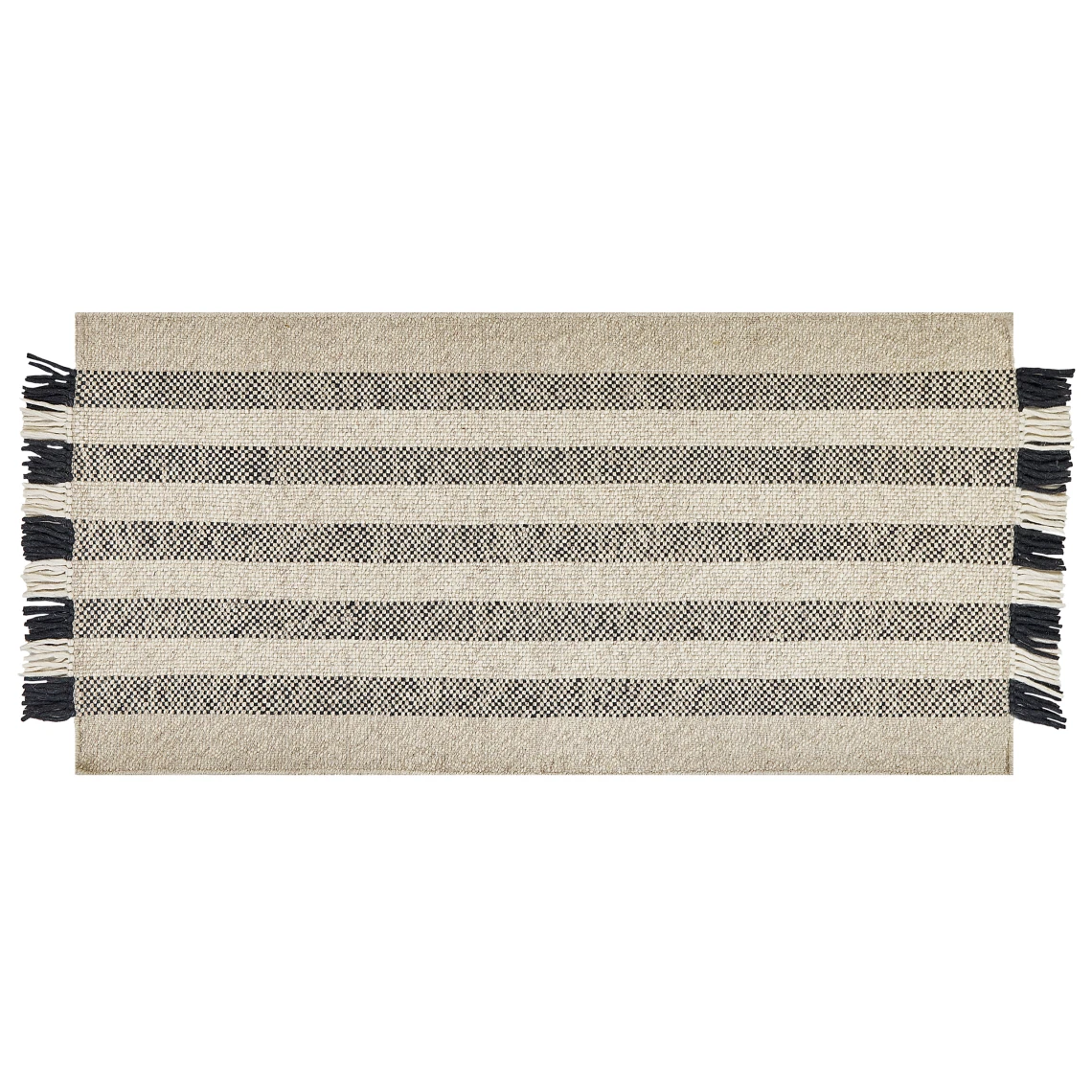 Points forts Beliani Tapis en laine blanc cassé et noir 80 x 150 cm TACETTIN