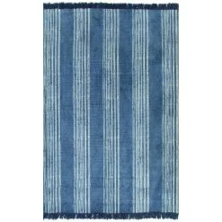 Ajoutez une pièce unique à votre intérieur avec notre tapis Kilim fait à la main. Le tapis de sol s’intégrera parfaitement dans votre salon, chambre à coucher ou bureau. Le tapis est tissé à la main à partir de 100 % coton, ce qui lui donne un aspect et un toucher naturels. Le tapis est imprimé avec un motif attrayant pour lui donner un aspect vintage. Veuillez noter que des légères différences entre chaque pièce peuvent être trouvées en raison de la nature faite à la main du produit. Couleur : bleu Matériau : 100 % coton Taille : 120 x 180 cm (l x L) Avec des beaux glands décoratifs aux deux extrémités Article fabriqué à la main et imprimé avec des motifs attrayants Aspect vintage Chaque pièce est unique