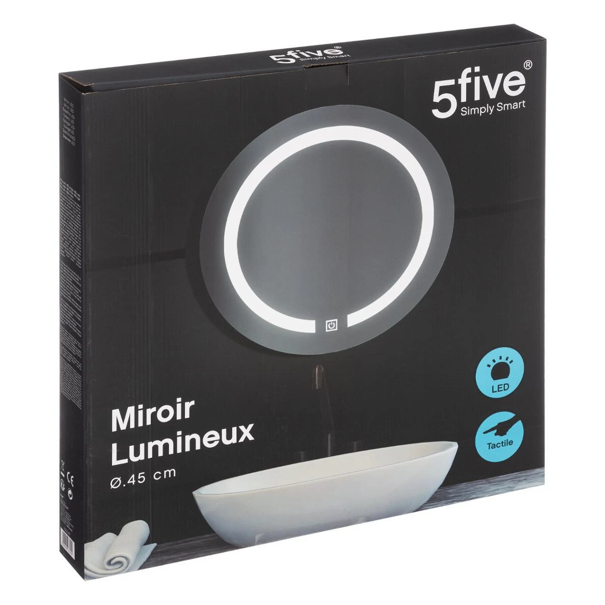 Miroir LED Rond.Marque : Five.Dimensions : D. 45 x P. 2,5 cm.Dimensions colis : D. 49 x P. 7 cm.Poids : 1,7 kg.Alimentation : Fonctionne avec 3 Piles LR 03 / AAA non fournies.Matières : Verre et MDF – Panneau de fibres de bois.Forme : Rond.Libérez votre pouvoir déco avec les produits de la marque Atmosphera ! Créée en 2011, cette marque propose des articles de décoration d’intérieur tendances et accessibles. Grâce à la grande variété de son offre, Atmosphera permet à chacun de trouver son style et d’exprimer sa créativité.