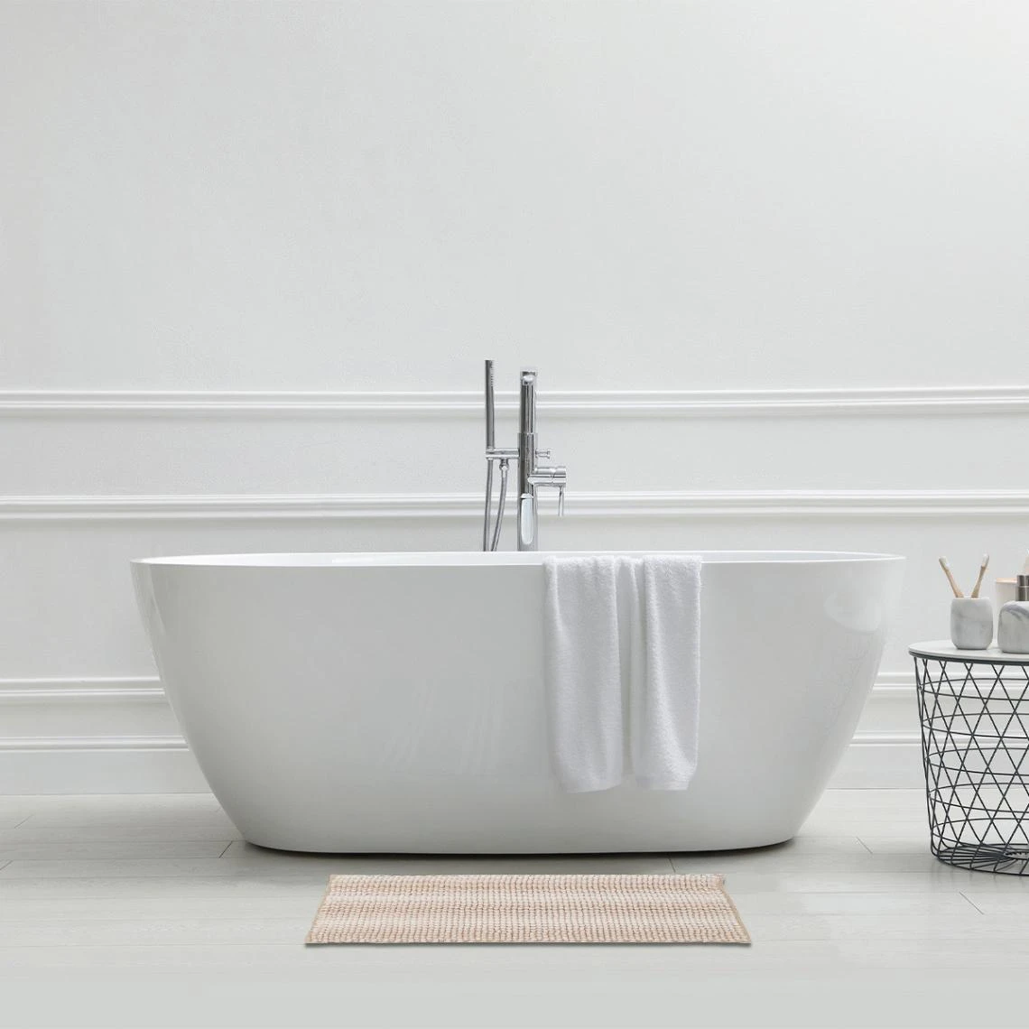 Ce tapis de bain beige est conçu entièrement en polyester. Ultra doux et épais, il apportera une touche de décoration à votre salle de bain. Ce tapis est lavable à 30°C en machine. Ne pas le repasser ni le sécher en machine.