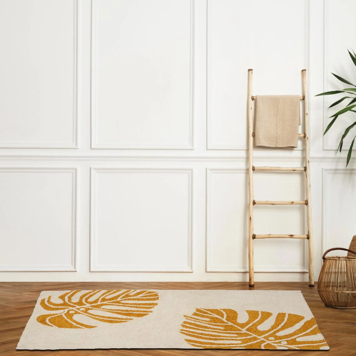 Un tapis jouant la carte déco avec ses feuilles géantes et sa couleur jaune, qui trouvera vite sa place dans l’entrée, une chambre ou un coin de votre salon.