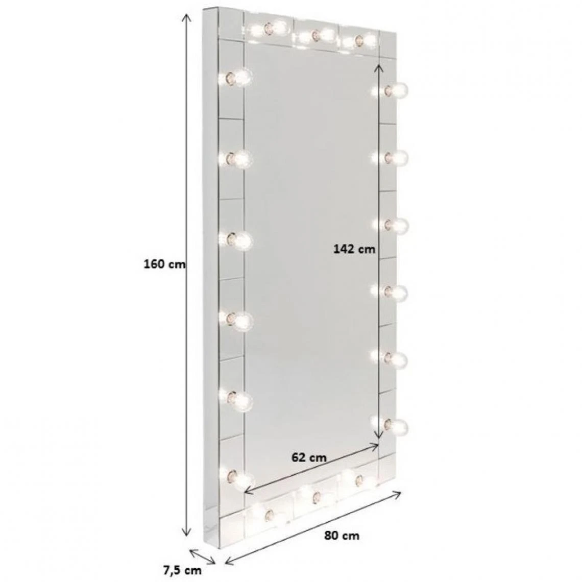 Longueur du câble : 420 cm. Surface du miroir : 141,50 – 61 cm. Miroir à poser au sol.
