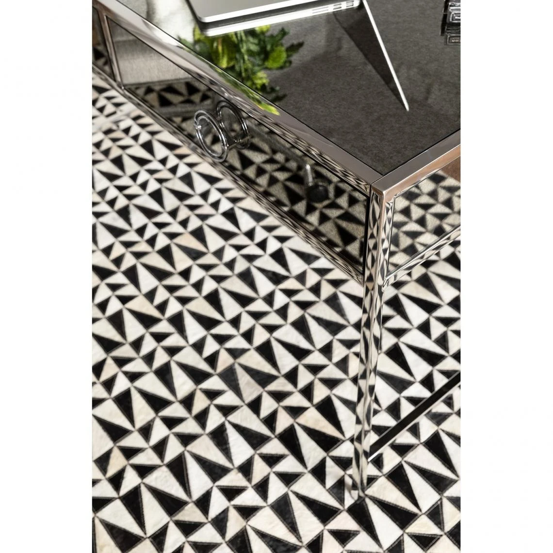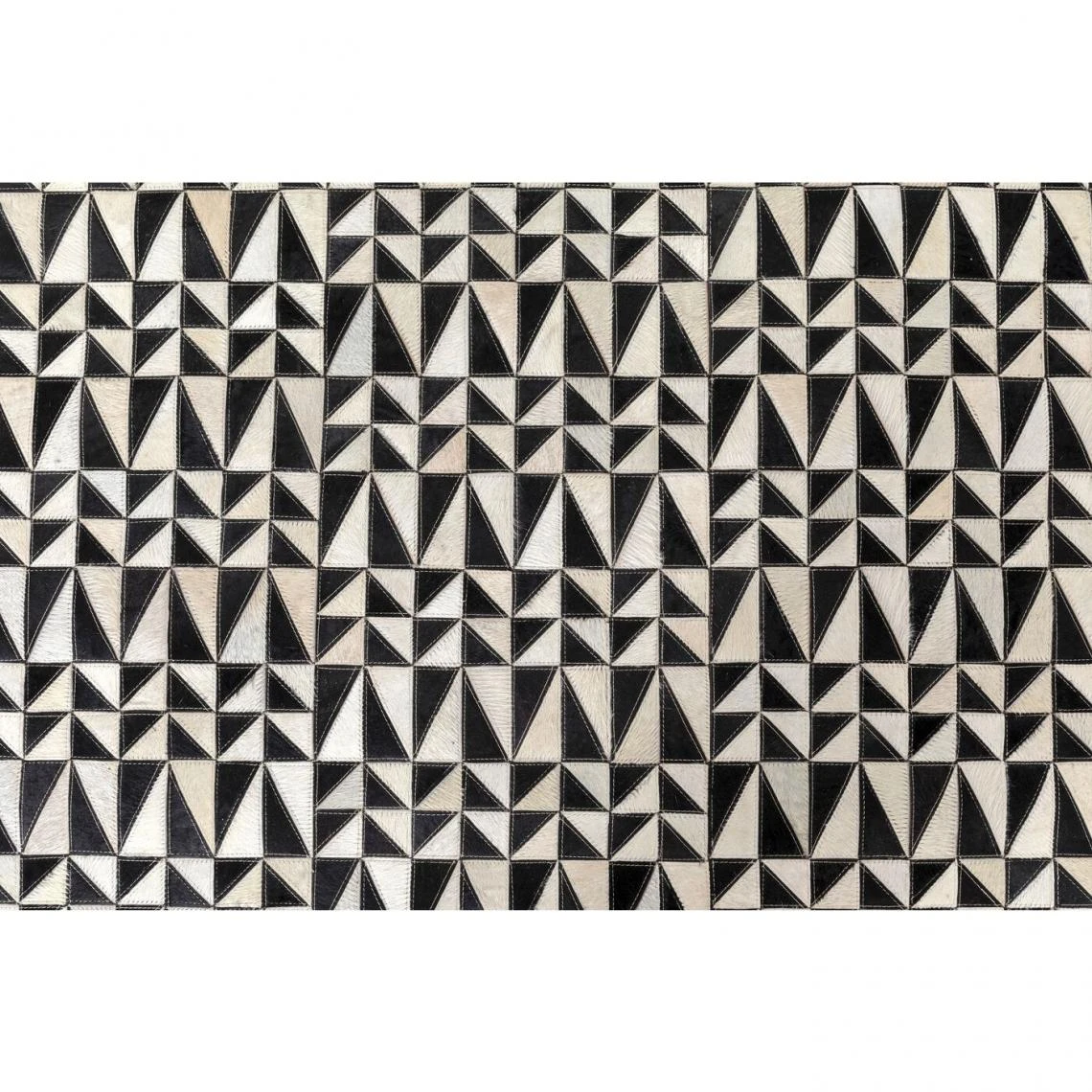 Ce tapis rectangulaire en cuir tire son inspiration des illusions d’optique avec ses triangles noirs et blancs. Ces deux teintes épurées lui permettent de trouver facilement sa place dans votre intérieur.