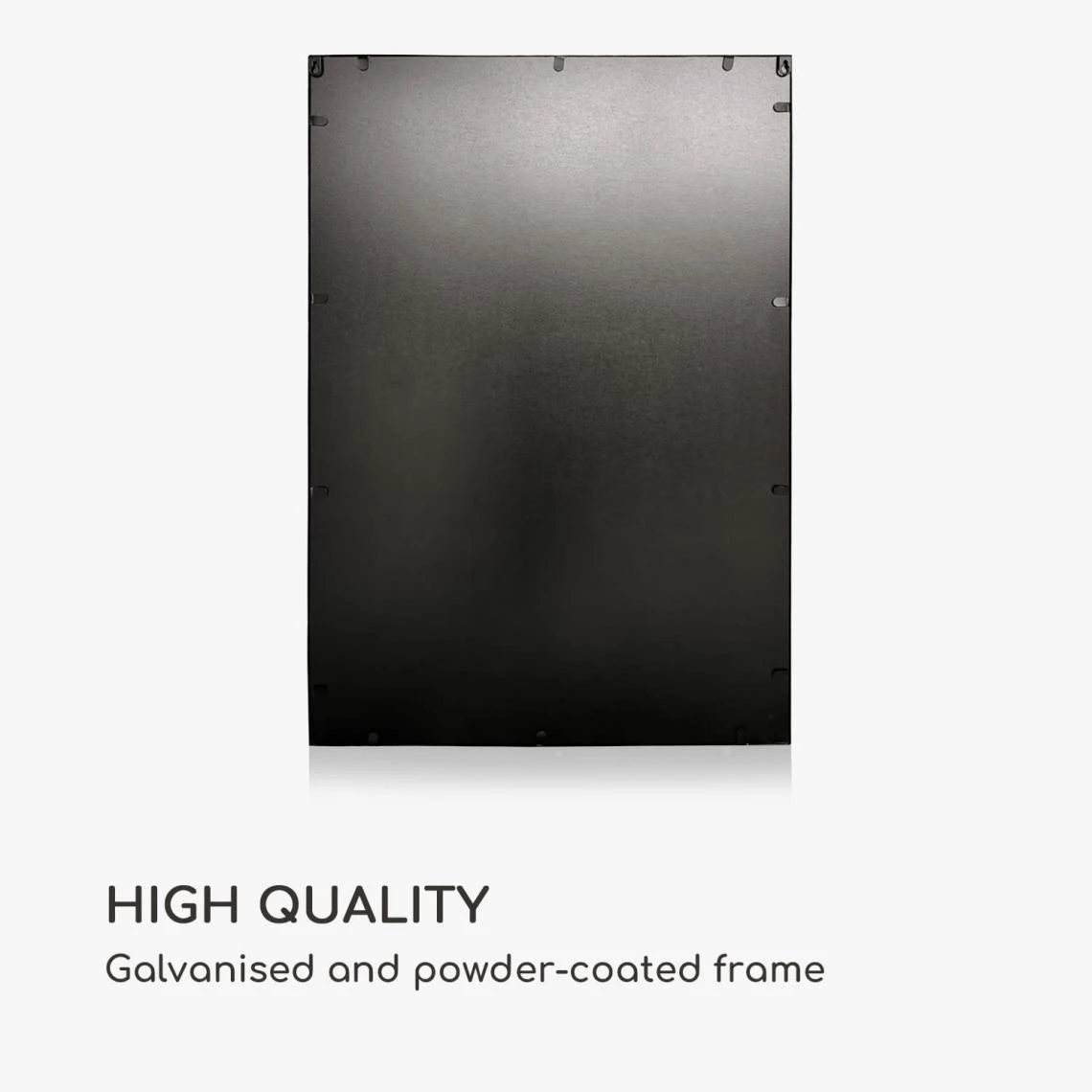 Le miroir mural Croxley de Casa Chic by blumfeldt avec un cadre métallique revêtu par poudre embellit chacune de vos pièces grâce à son aspect de haute qualité et peut être installé aussi bien à la verticale qu’à l’horizontale. Avec ses dimensions de 70 x 50 cm et son cadre galvanisé, il résiste à l’humidité et convient particulièrement bien aux salles de bains, salons, chambres à coucher ou halls d’entrée.