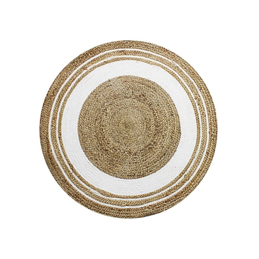 Points forts Mon Beau Tapis FUNNY JUTE – Tapis rond en jute et coton cercle blanc diam.90