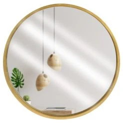 Points forts Other Miroir dans un cadre en bois doré, miroir de salle de bain doré mural rond pour le salon 50 cm