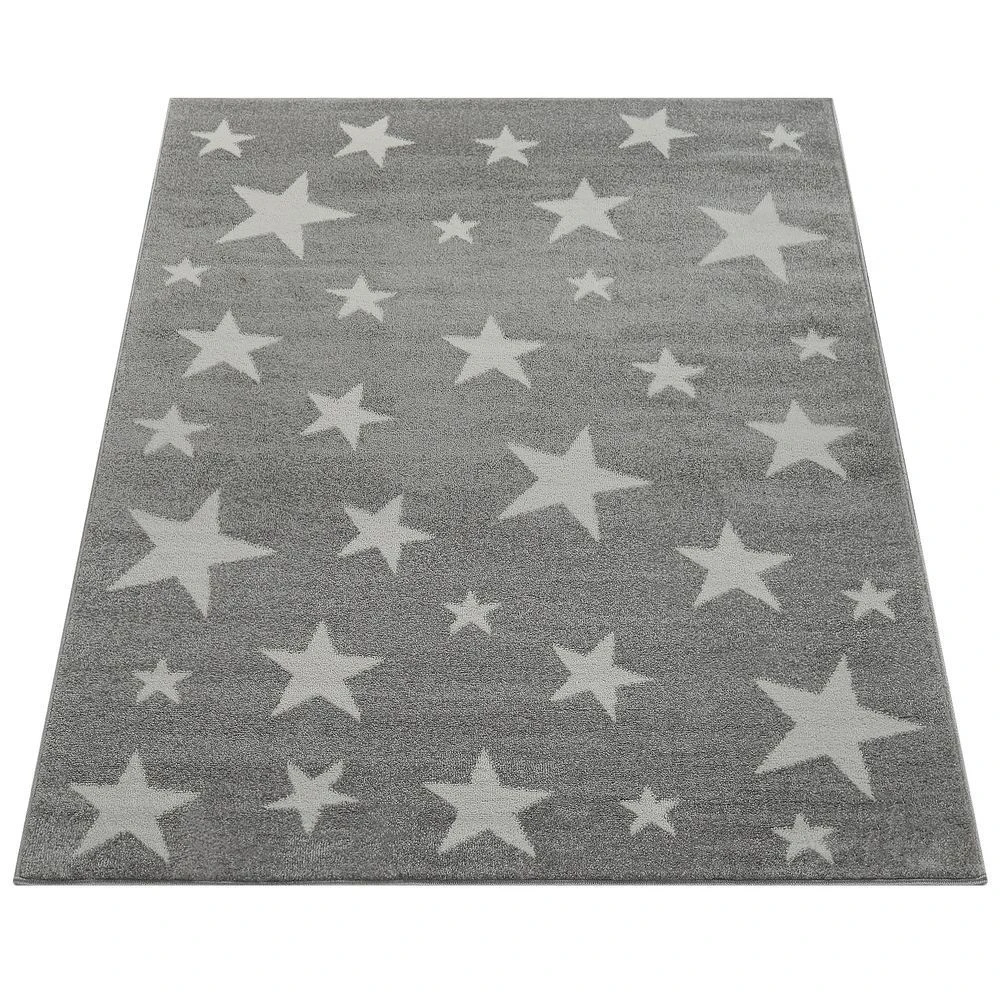 Points forts Paco-Home Moderne Poils Ras Tapis Enfant Motif Étoilé Chambre D’Enfant Étoile Gris Blanc