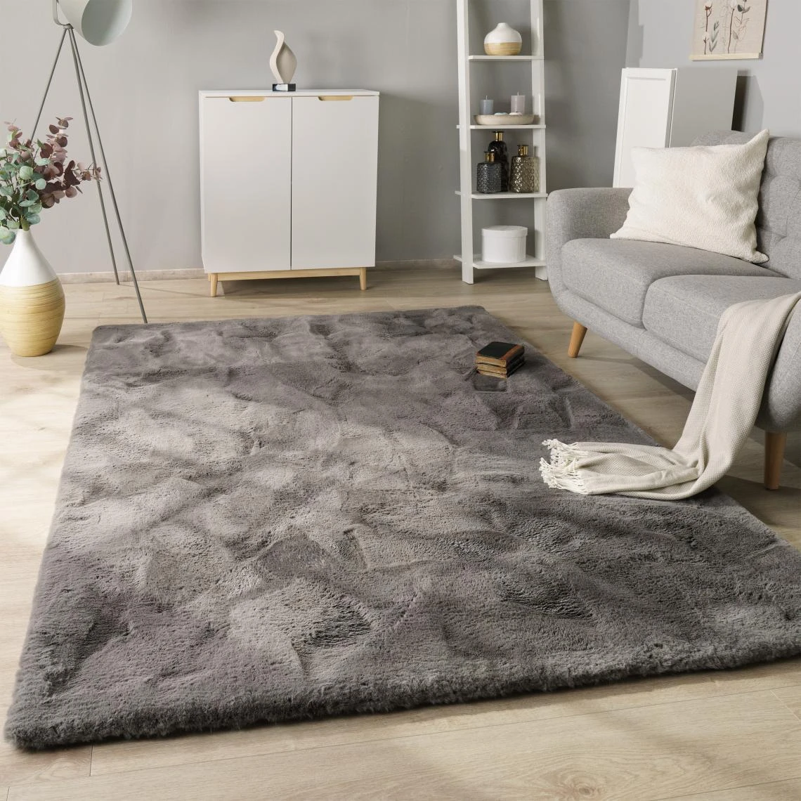 Points forts Paco-Home Poils Longs Tapis De Salon Shaggy Imitation Fourrure Lapin Moelleux Anthracite