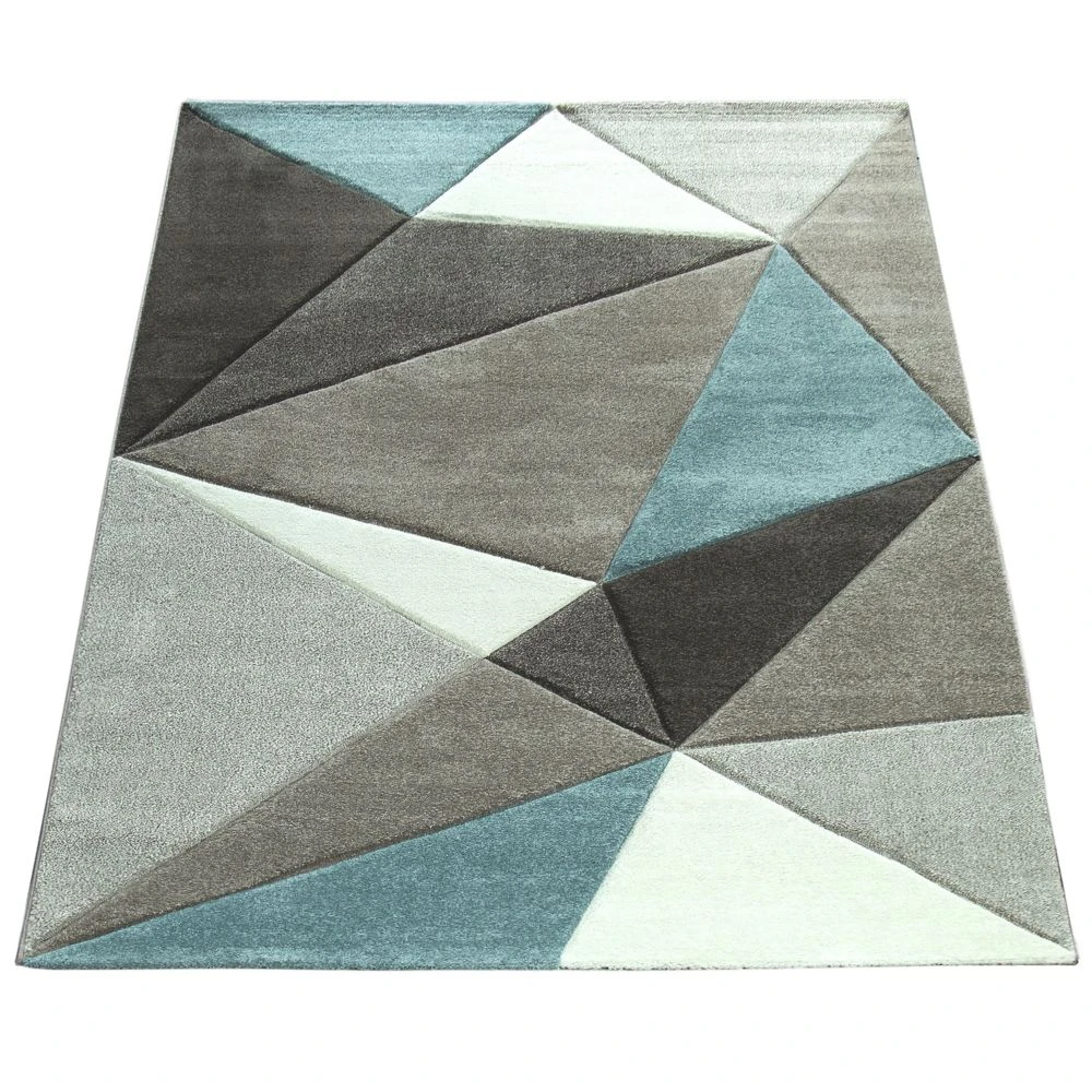 Points forts Paco-Home Tapis 3D Triangles Pastel Tendance Gris Turquoise