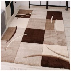 Points forts Paco-Home Tapis De Créateur Aux Contours Découpés à Carreaux En Marron Beige