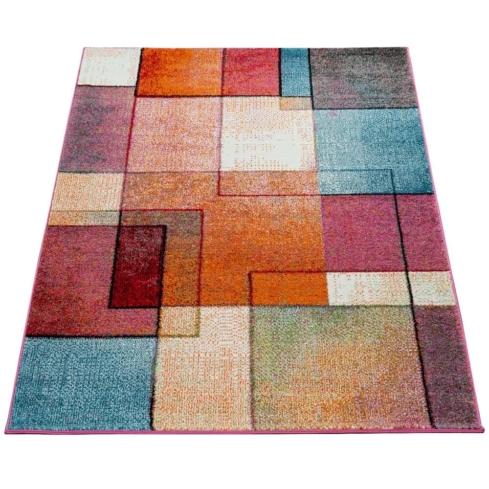 Points forts Paco-Home Tapis De Créateur Moderne Coloré Motif à Carreaux Multicolore Turquoise Vert Fuchsia Chiné