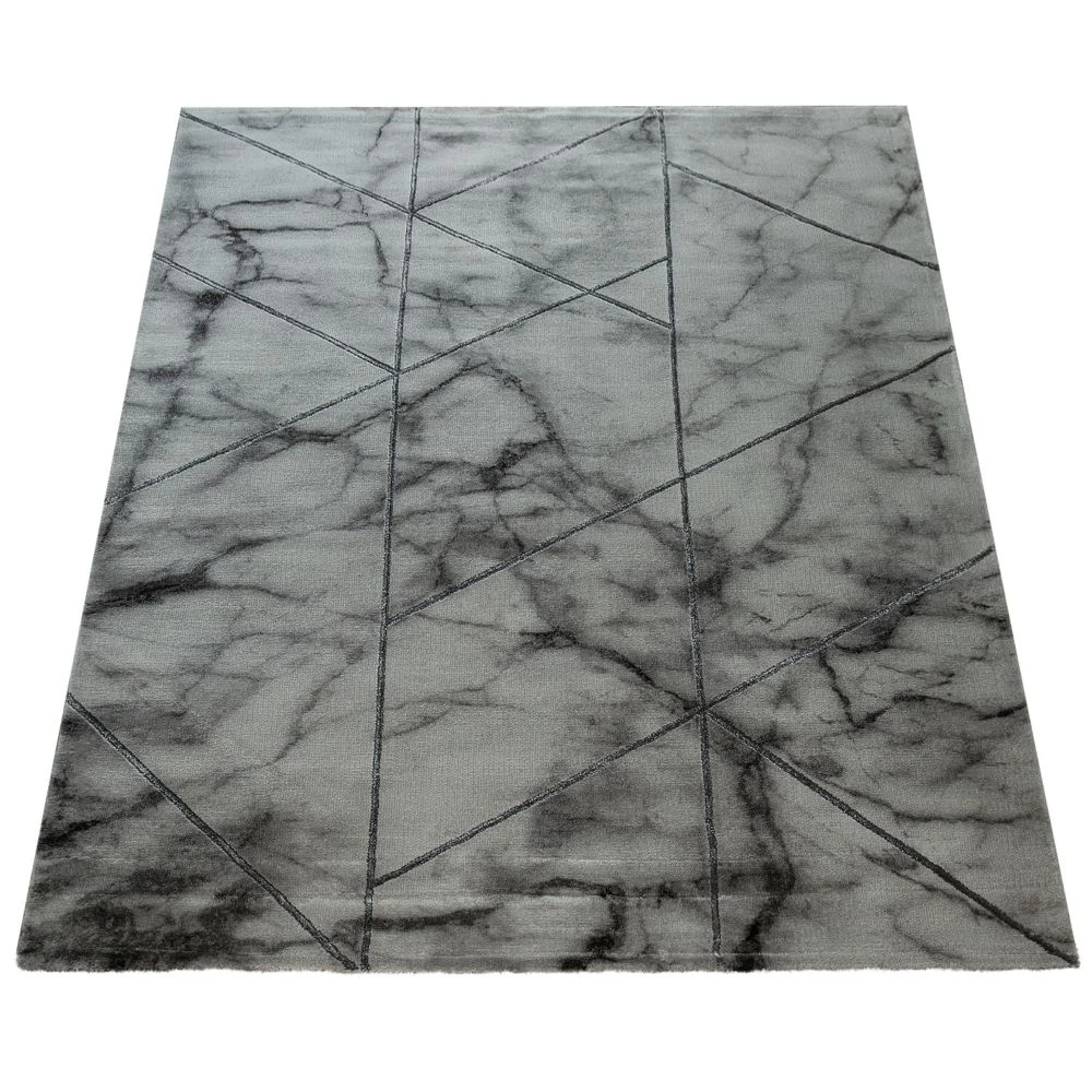 Points forts Paco-Home Tapis de salon gris marbre argenté Optiques 3D Design poil court moquette souple de haute qualité