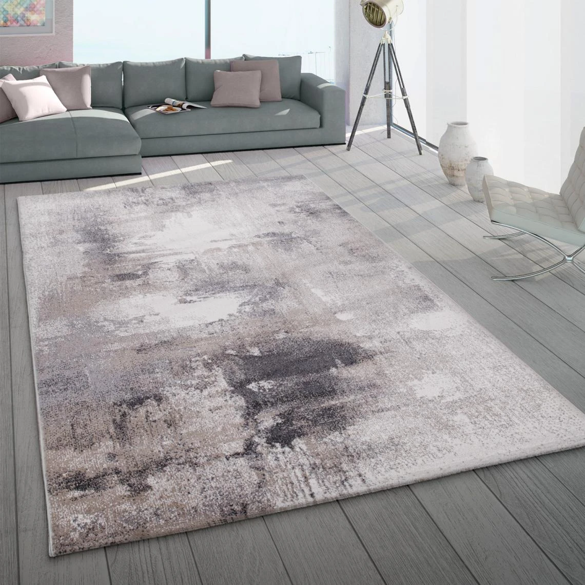 Points forts Paco-Home Tapis De Salon Poils Ras Abstrait Pastel Beige Crème Anthracite
