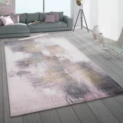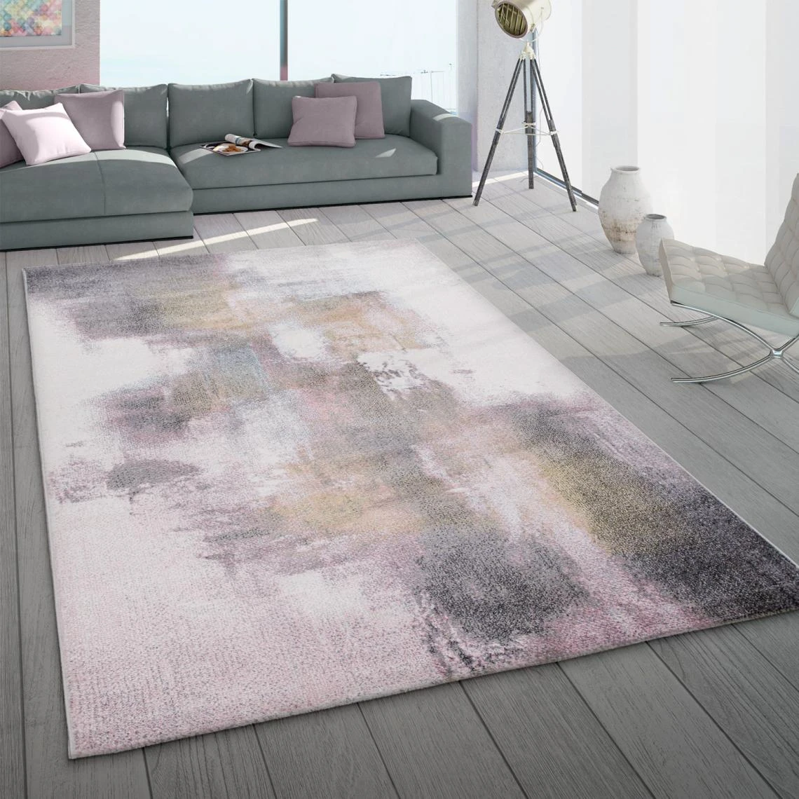Points forts Paco-Home Tapis De Salon Poils Ras Abstrait Pastel Vintage Moderne Crème Gris Violet