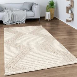 Points forts Paco-Home Tapis De Salon Poils Ras Motif Boho Geometrique Ethnique Scandinave Crème