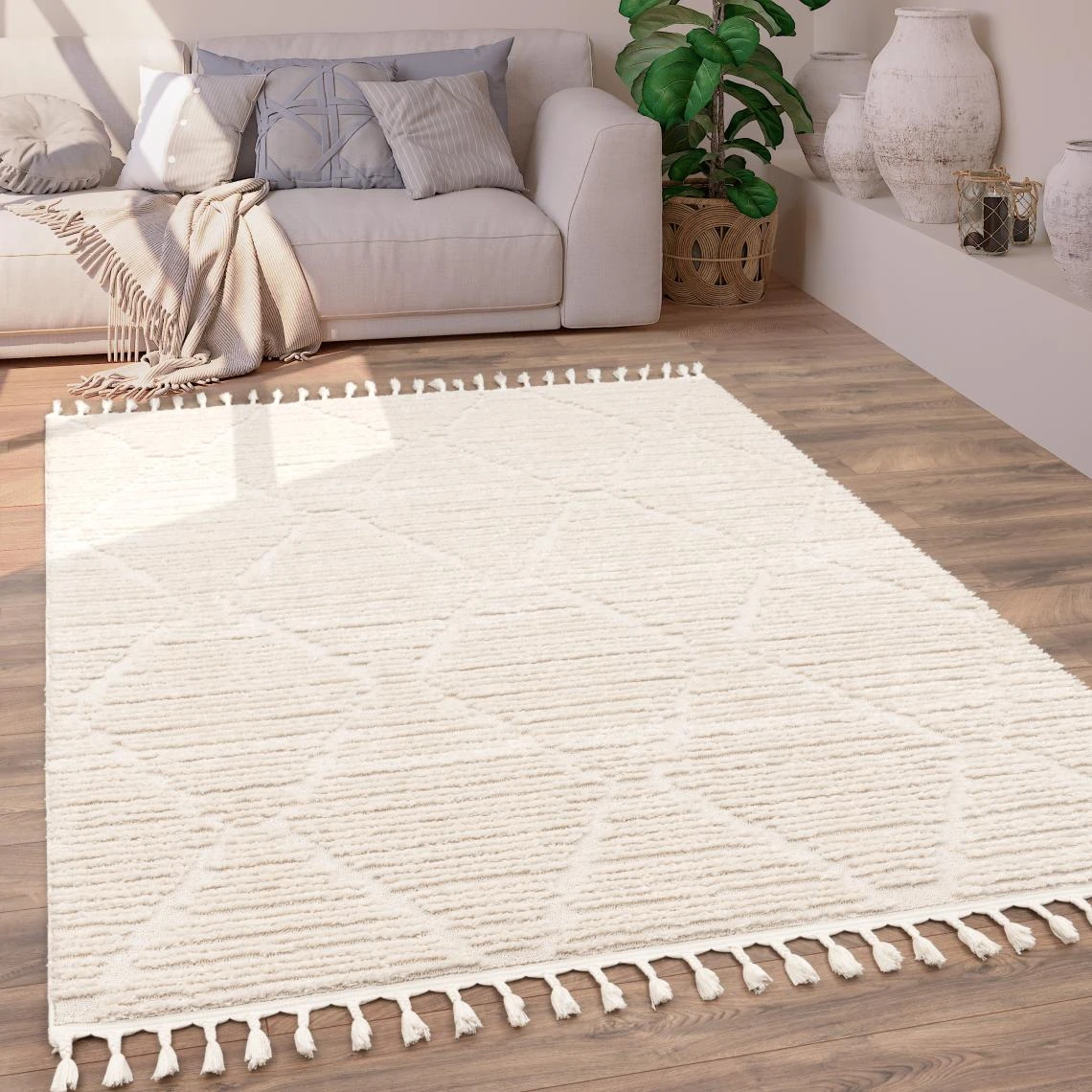 Points forts Paco-Home Tapis De Salon Poils Ras Motif Scandinave Motif Boho Uni Motif Losange Crème