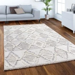 Points forts Paco-Home Tapis De Salon Poils Ras Motif Scandinave Motif Losange 3D Franges Crème