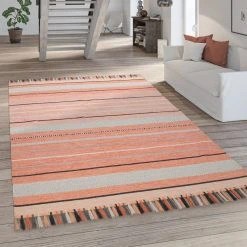Points forts Paco-Home Tapis De Salon, Tissage Plat Tissé À La Main Design Ethnique, Rouge Et Abricot