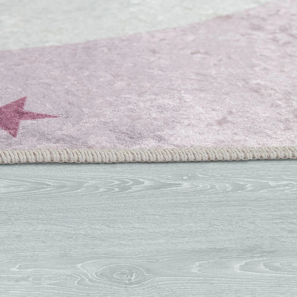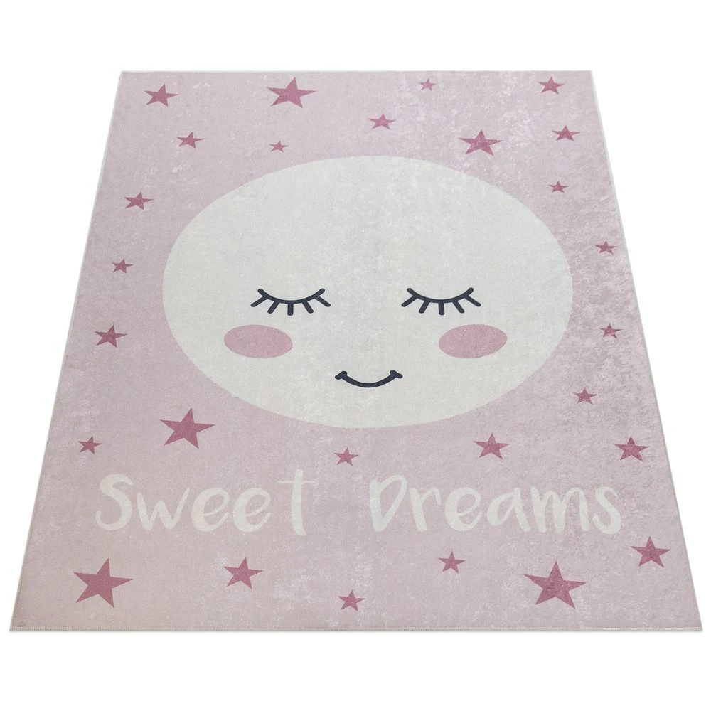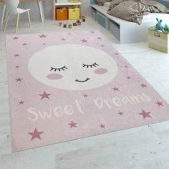 Points forts Paco-Home Tapis Enfant Chambre Enfant Filles Lavable Étoiles Mignon Lune Inscription Rose