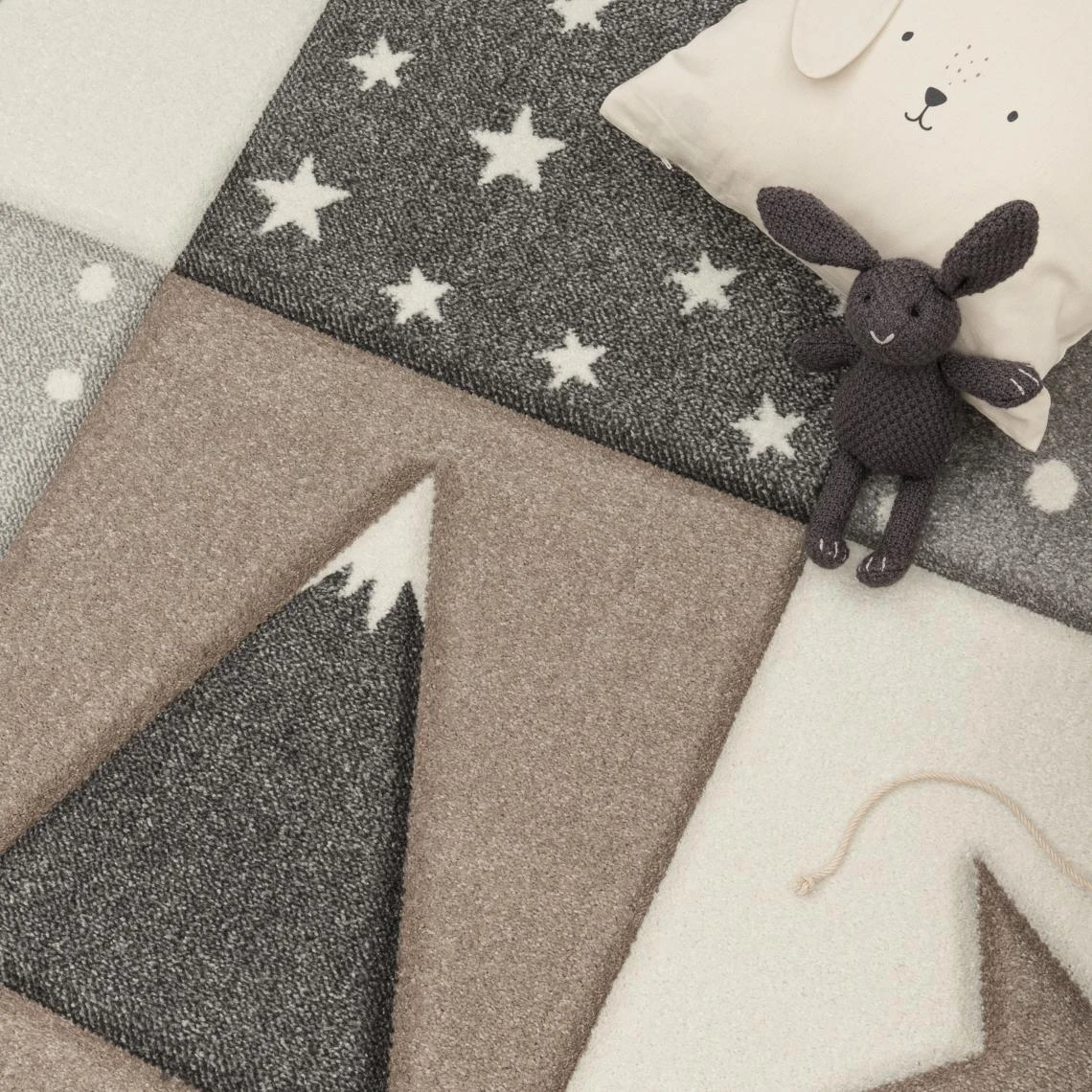 Points forts Paco-Home Tapis Enfant Tapis Chambre Enfant Fille Garcon Pastel 3D Pois Etoile Beige Gris