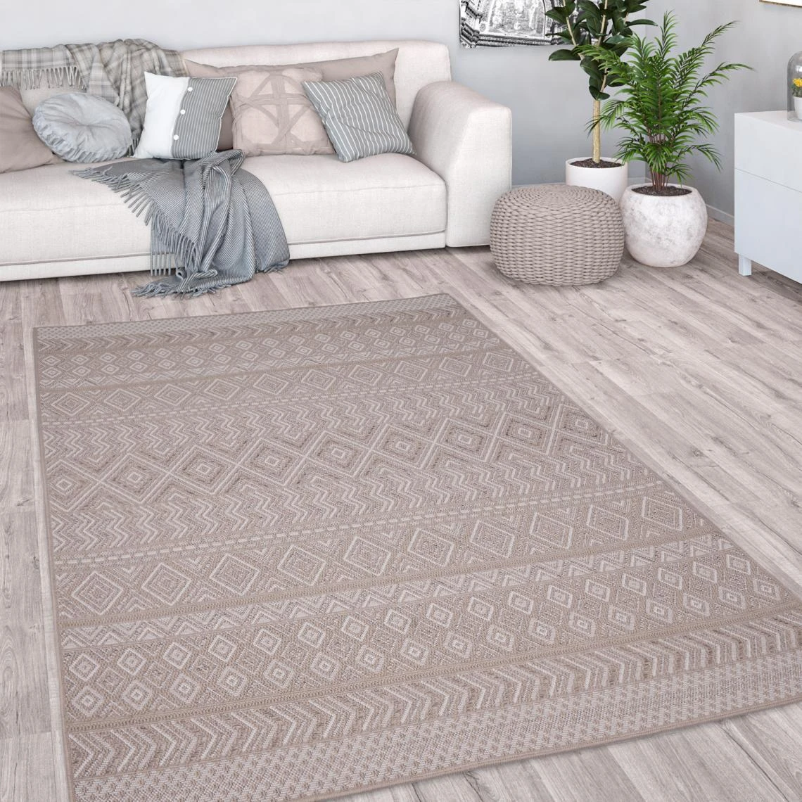 Points forts Paco-Home Tapis Exterieur Terrasse Balcon Tapis Cuisine Motif Losange Motif Boho Beige