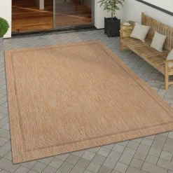 Points forts Paco-Home Tapis Exterieur Terrasse Balcon Tapis Cuisine Uni Avec Bordure Moderne Beige