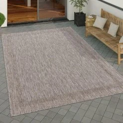 Points forts Paco-Home Tapis Exterieur Terrasse Balcon Tapis Cuisine Uni Avec Bordure Moderne Taupe Beige