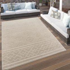 Points forts Paco-Home Tapis Exterieur Terrasse Salon Cuisine Scandinave Boho Motif Geometrique Beige