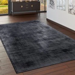 Points forts Paco-Home Tapis Fait Main Haut De Gamme 100 % Viscose Vintage Aspect Chiné Anthracite
