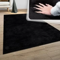 Points forts Paco-Home Tapis Poils Longs, Shaggy Pour Salon, Moelleux, Doux, Lavable, Noir
