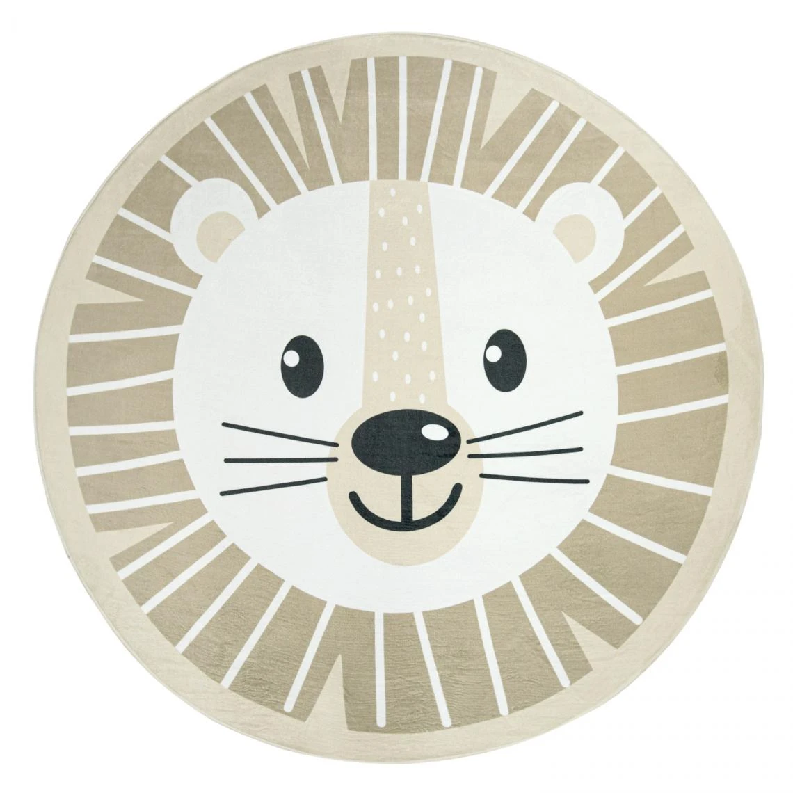 Points forts Paco-Home Tapis Rond Chambre Enfant Tapis De Jeux Tapis Bébé Motif Lions Beige Blanc