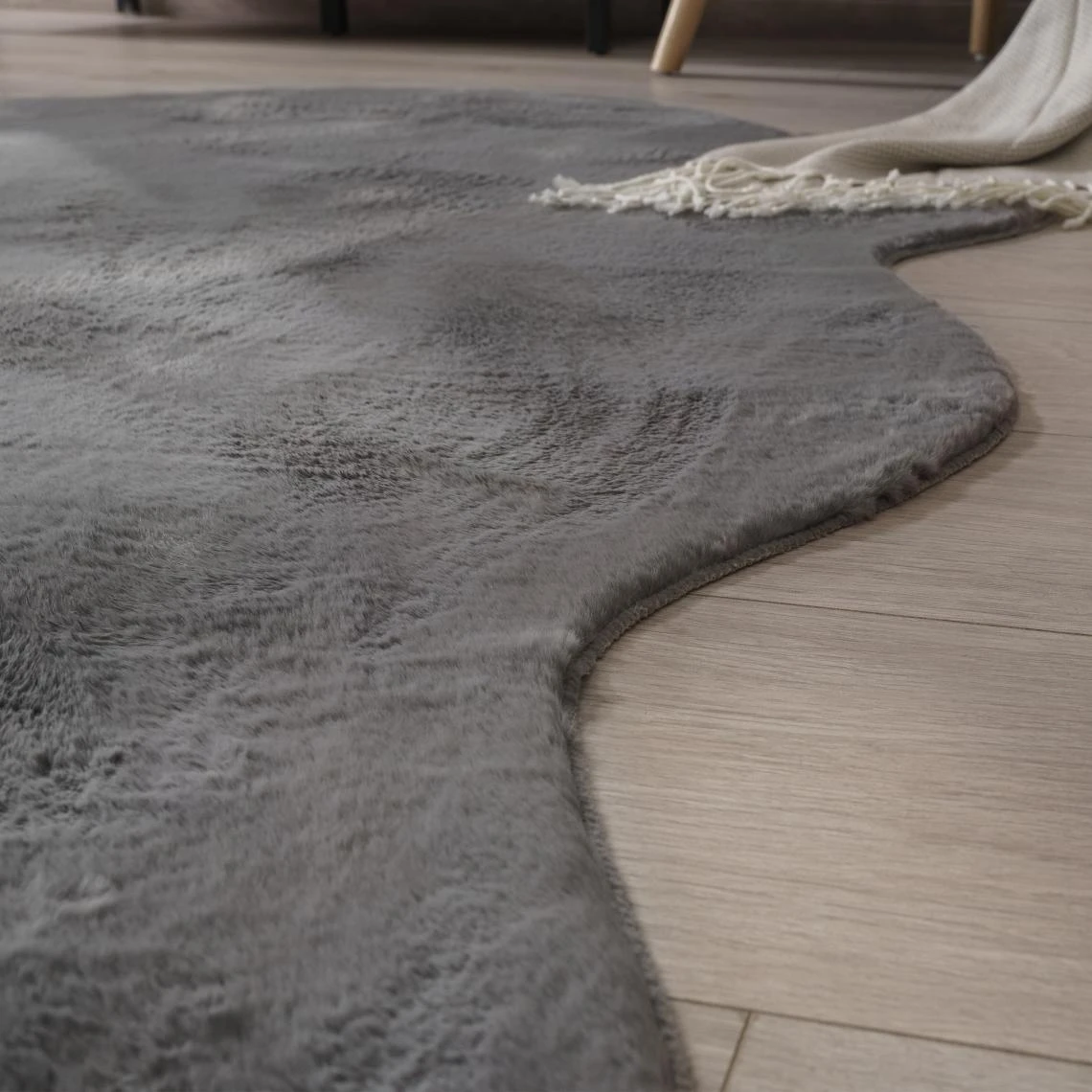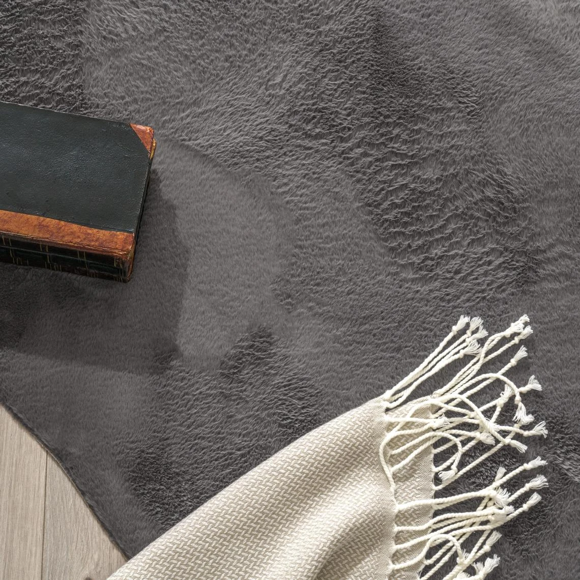 Points forts Paco-Home Tapis Salon Tapis Poils Ras Doux Moderne Monochrome Fausse Fourrure Anthracite