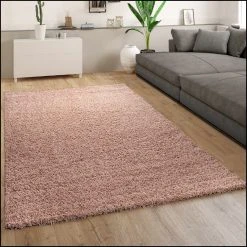Points forts Paco-Home Tapis Shaggy Tapis Salon Shaggy Poil Long Moderne Monochrome Rose