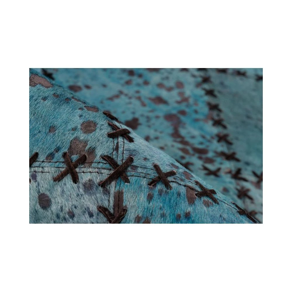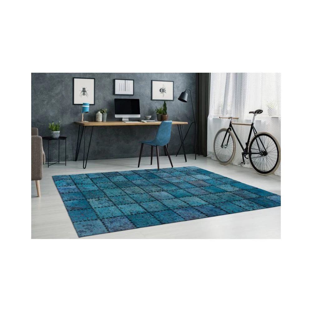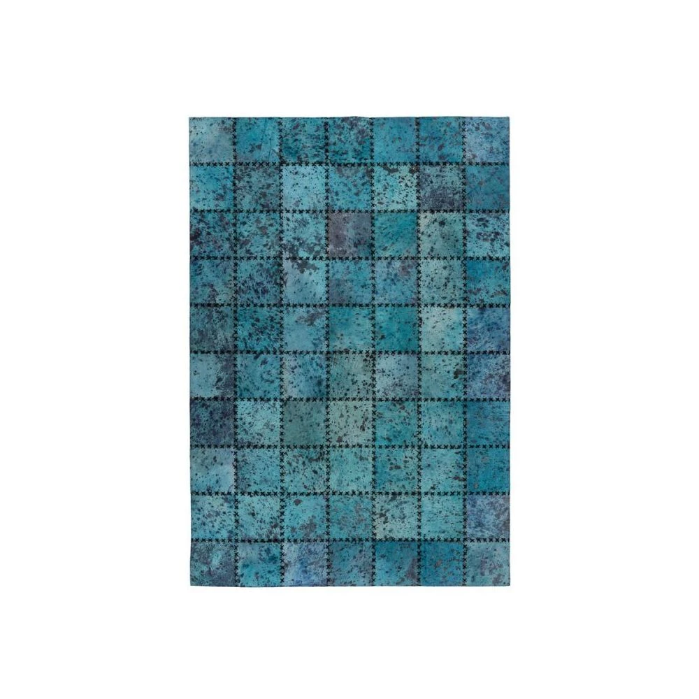 Points forts Paris Prix Tapis Patchwork en Cuir Fait Main “”Voila”” Turquoise – 120 x 170 cm