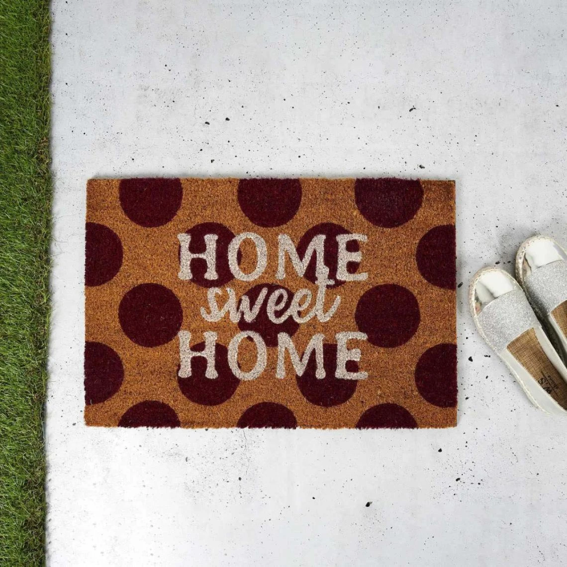 Points forts The Home Deco Factory Paillasson fibre de coco avec inscription 60 x 40 cm Pois – Home sweet home.